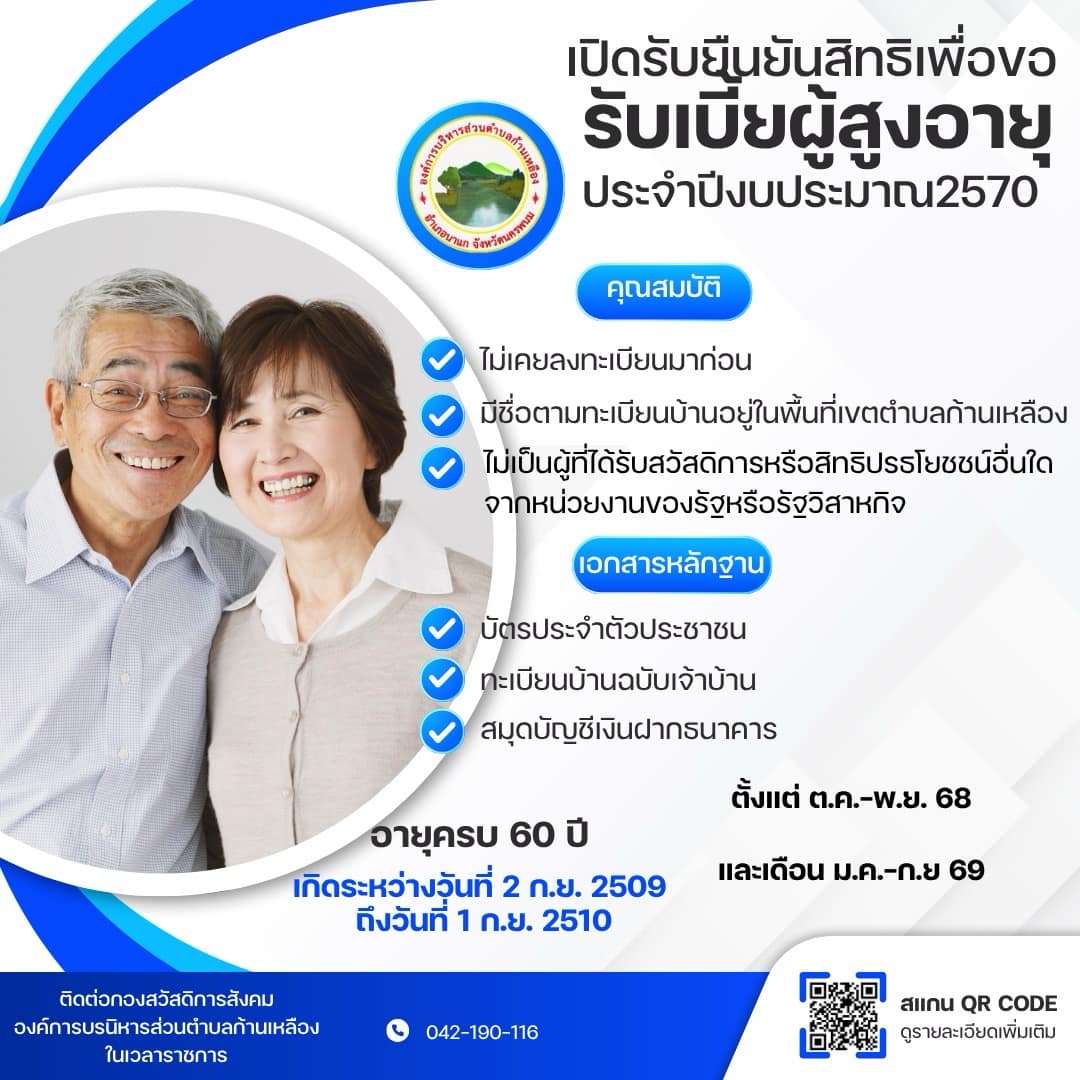 เปิดรับยืนยันสิทธิเพื่อขอรับเบี้ยผู้สูงอายุ ประจำปีงบประมาณ2570